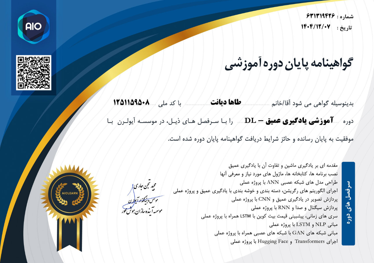 سلام! من طاها دیانت هستم، یک توسعهدهنده وب و هوش مصنوعی با چندین سال تجربه.